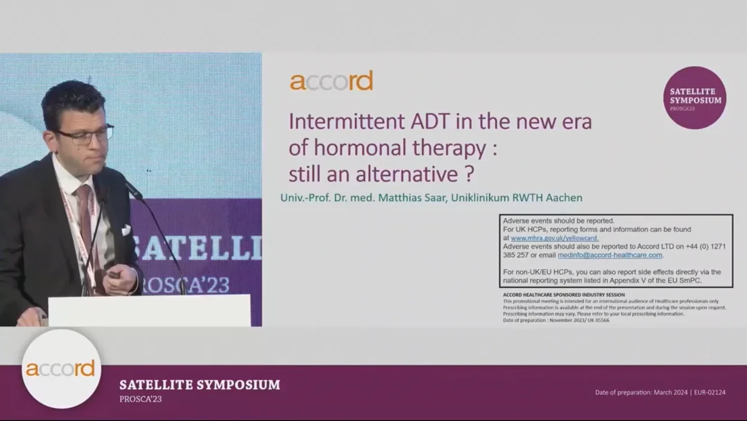 At PROSCA 2023, Prof Matthias Saar presents the Intermittent ADT in the new era of hormonal therapy and highlights the alternative treatment options.