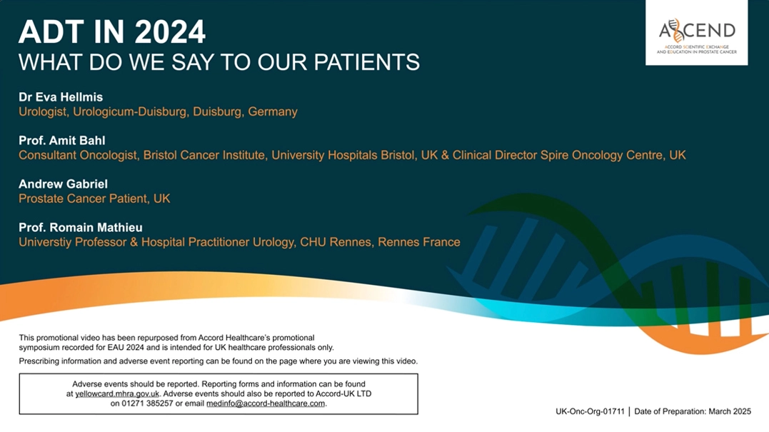 During this meeting, Dr Eva Hellmis, Prof Amit Bahl, Prof Romain Mathieu and Andrew Gabriel talk through patient perspectives of ADT