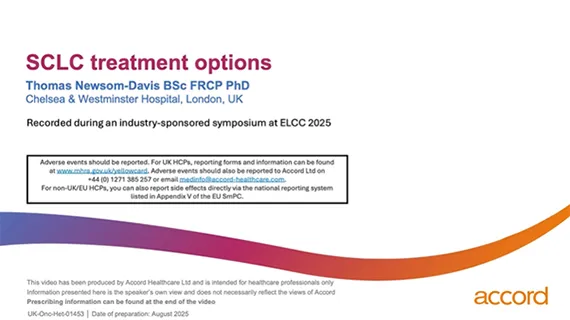 Dr Thomas Newsom-Davies discusses small-cell lung cancer treatment options during the promotional symposium sponsored by Accord Healthcare Ltd at ELCC 2025